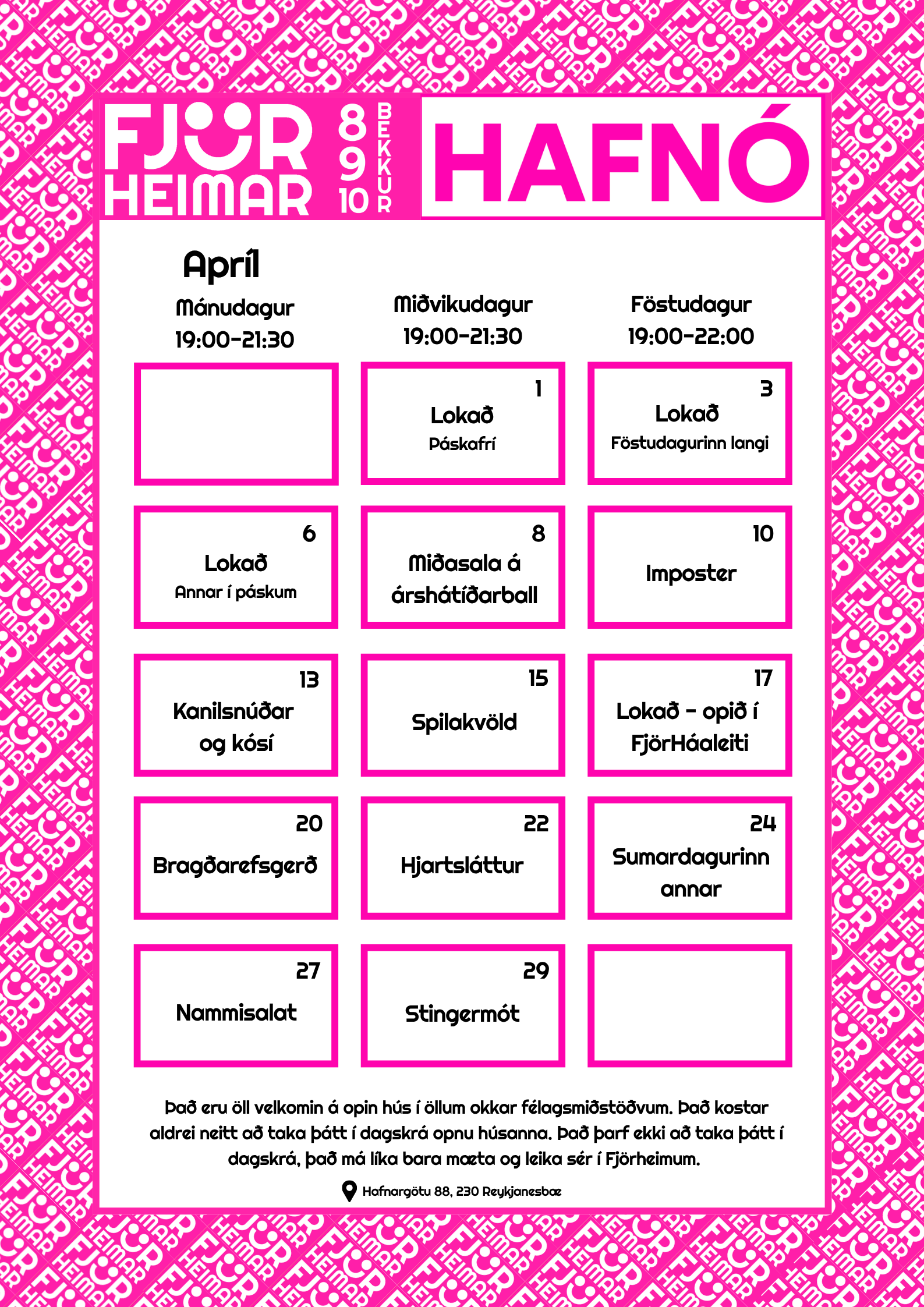 Félagsmiðstöðin Fjörheimar kynnir nýjung í starfi sínu: hinsegin opnanir alla fimmtudaga kl. 20:00–22:00 í húsnæði okkar að Hafnargötu 88. Hinsegin opnanir eru ætlaðar ungmennum á aldrinum 13–17 ára og er markmið þeirra að skapa öruggt, hlýtt og opið rými þar sem hinsegin ungmenni geta verið þau sjálf og kynnst öðrum hinsegin ungmennum. Markmið félagsmiðstöðvarinnar er að veita hinsegin ungmennum stuðning, styrkja eigin sjálfsmynd og gefa þeim kost á að tilheyra hinsegin samfélagi. Á opnununum verður lögð áhersla á notalegt andrúmsloft, samveru og starfsemi sem mótast af þörfum og áhuga þátttakenda. Starfsfólk á opnununum eru Sonja og Andrea. Öll sem skilgreina sig sem hinsegin eða eru í hinsegin pælingum, eru hjartanlega velkomin. 🌈Sjáumst í Fjörheimum á fimmtudögum!
