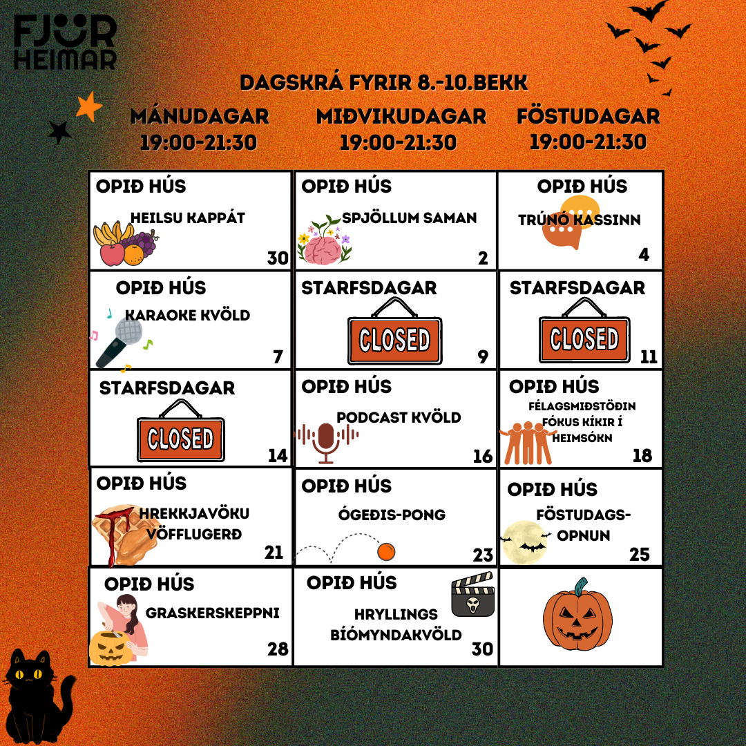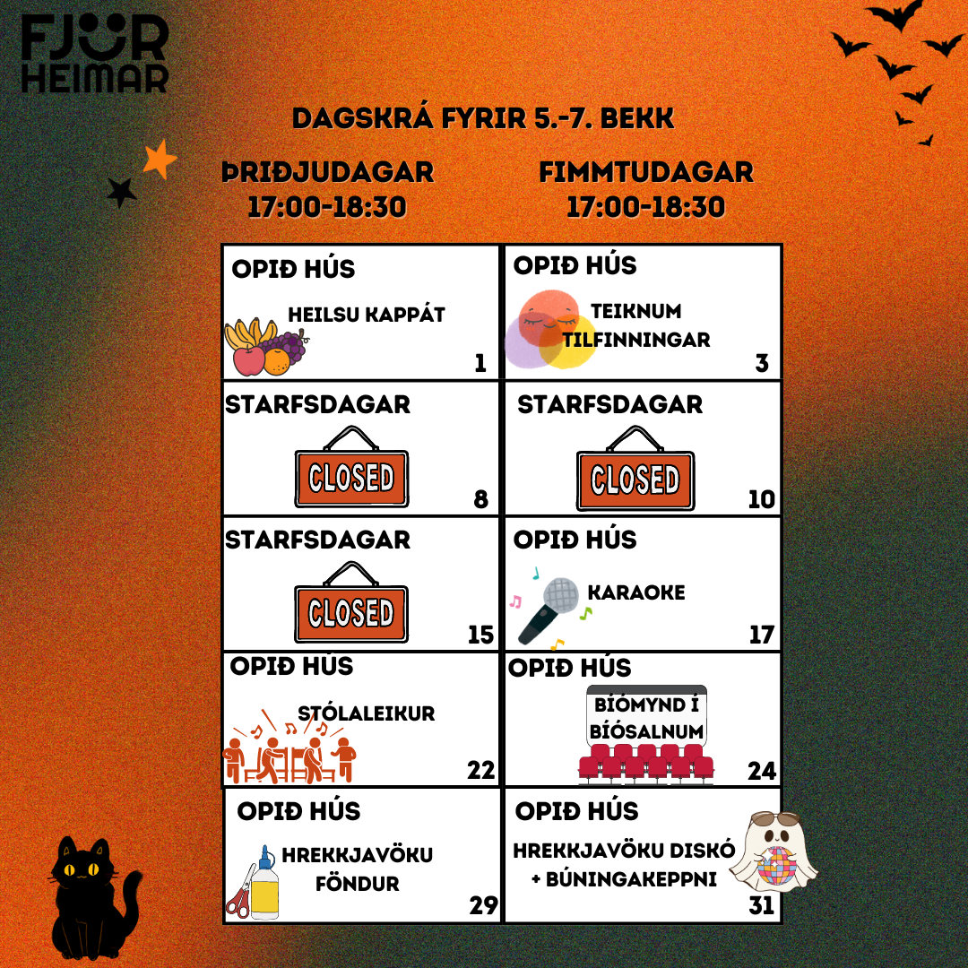 Dagskrá Fjörheima í Október!
